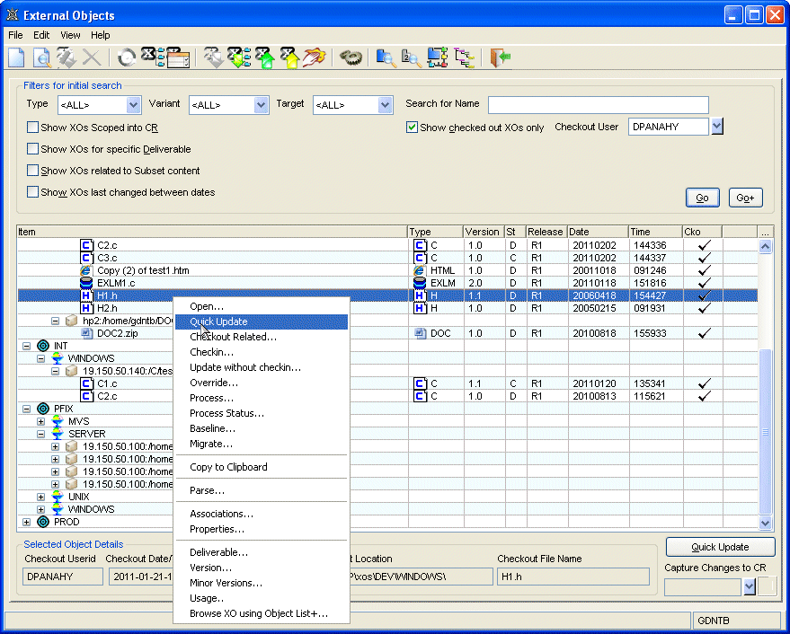 To be able to edit an external object, it must be checked out to the developer's workstation. XOS uses similar concepts to Gen since these will be familiar to a Gen developer. An external object is checked out from either the External Objects window or using the External Object Download feature of the Subset Assistant.