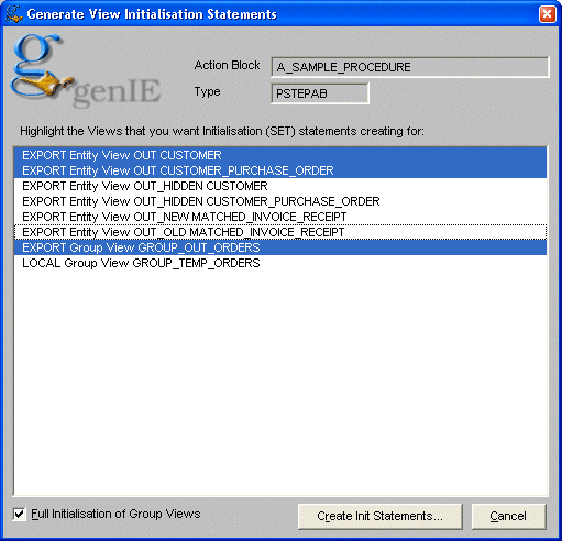 The Generate View Initialisation Statements function allows you to quickly generate statements to initialise views.
