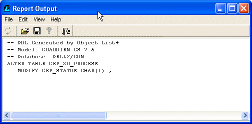 Object List+ allows you to compare the database design in the model with a physical database and also generate ALTER DDL to synchronise the database column definitions with the model.