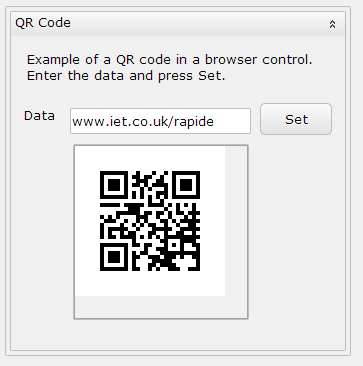 | A browser control can be used for a variety of purposes. In the example on the right, a dynamically generated QR code is rendered in a browser control. | ![]() |
