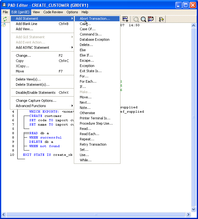 Examples of changes that can be made include adding most types of statement, changing, deleting, copy & move statements, change view mapping, add, modify and delete views and cross-copy statements from other action diagrams.