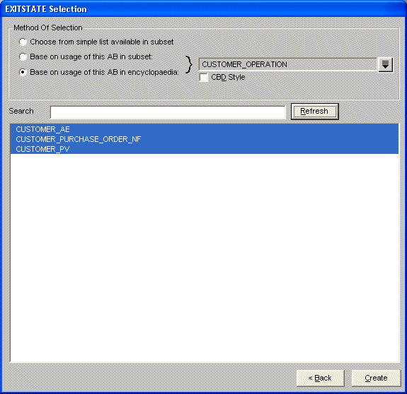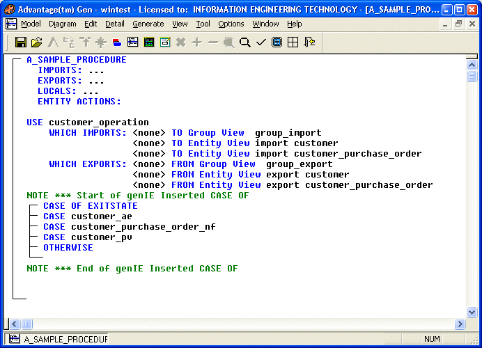 In the example below, we have a USE customer_operation statement and want to test the exit states that might be returned by this action block and all action blocks that it might also USE. Without genIE, we would have to browse all of the USEd action diagrams to determine all possible exit states and then manually select the exit states for the CASE OF EXITSTATE statement.