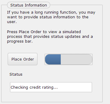When a transaction is initiated by the user that takes more than a few seconds to complete, it is good practice to provide status updates to the user to indicate that progress is being made and the transaction is still being processed.