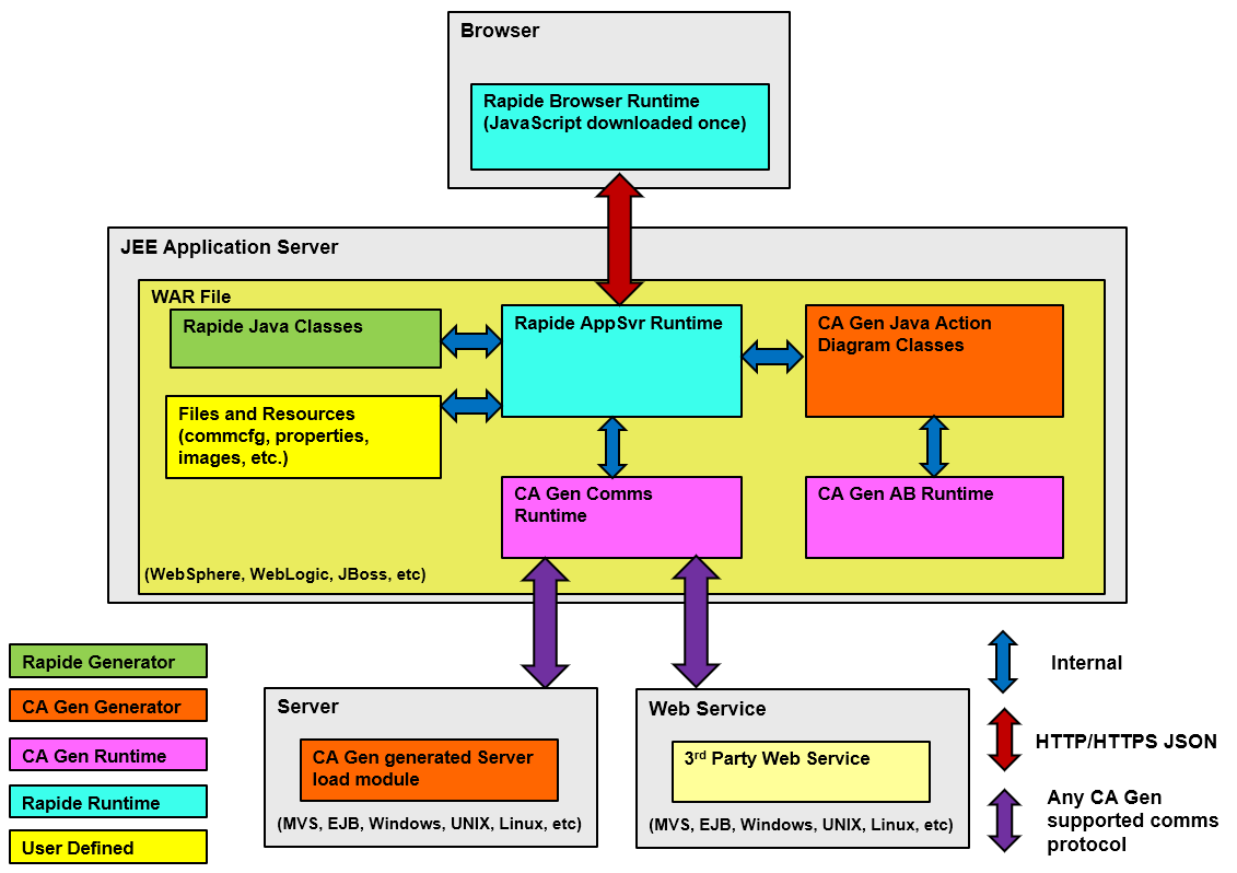 In addition to the Rapide runtime, the application also requires the Gen communications runtime for server flows and the action diagram runtime for action diagram functions. However the Rapide runtime replaces the Gen runtimes that support the user interface.